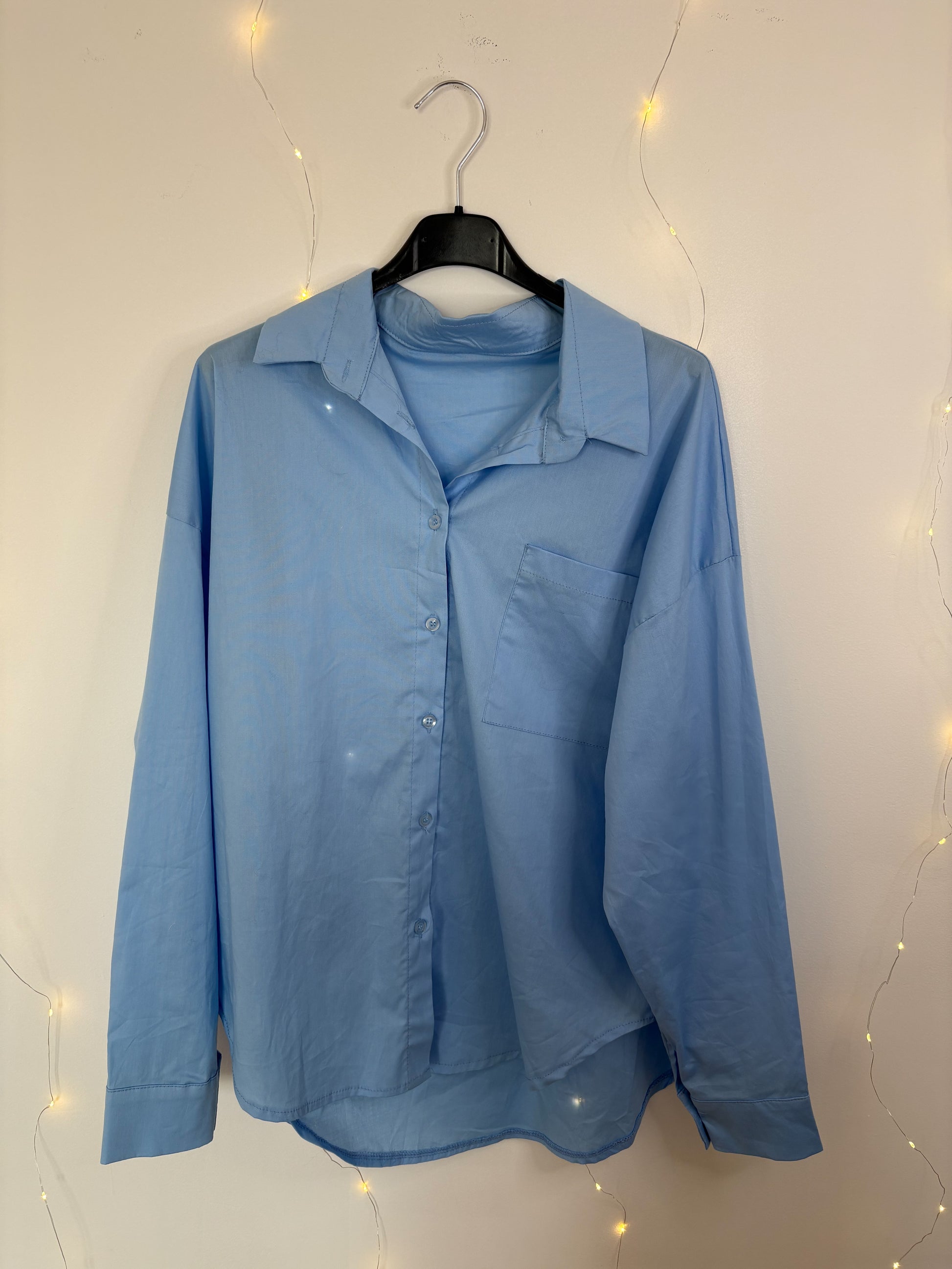La chemise BLOOM est la touche clean et effortless qu’on adore ajouter à nos looks du quotidien. Sa coupe ample et sa teinte bleu ciel apportent une vraie sensation de fraîcheur. Elle se porte aussi bien fermée qu’ouverte sur un top ou un body, pour un look cool sans en faire trop.